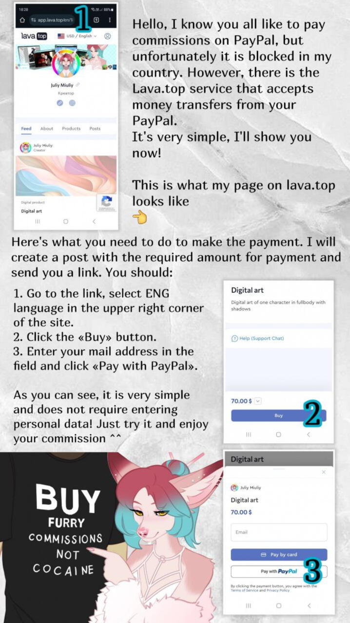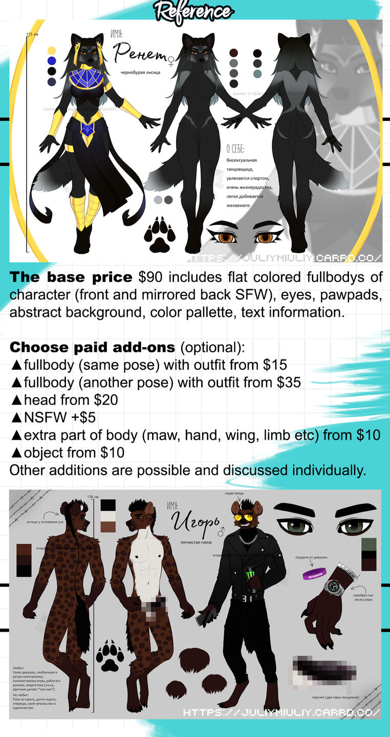 • You can make two minor edits at the sketch and flat color stage. It doesn't count if I forgot something myself. After those two edits, there will be an Edit Fee charged.• Commissioners have my permission to post their commission on any website for personal use and may credit my nickname.• Commissioners do not have permission to edit any art you have received from me, or have another artist alter any of my work (See Copyright Policy). Only exception is cropping for avatar/icon.• Commissioners may use their own commissioned pieces for personal uses only; You cannot profit from this work in any way, including using commissioned artwork for advertising or any commercial use.• You must let me know if you want to commission a sketch or line to color/complete it your own.• You cannot remove watermarks and take credit for the artwork.• I publish all my work in my portfolios, if you did not pay extra for the confidentiality of the drawing;